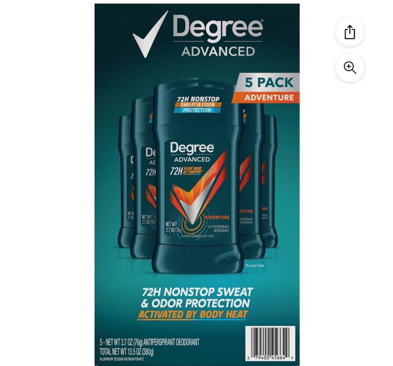 - Degree for Men Advanced Protection Antiperspirant, Adventure, 2.7 oz., 5 pk.